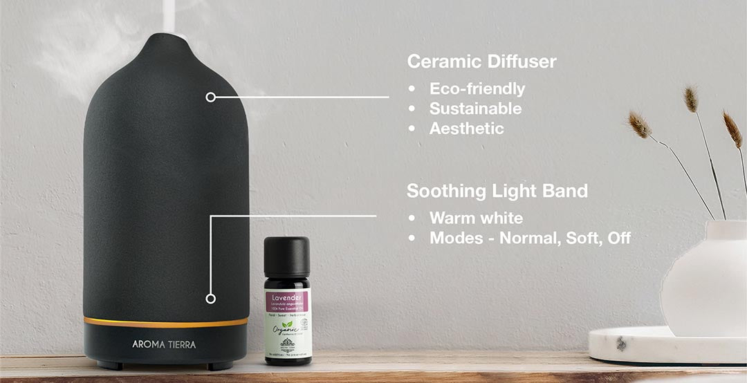 Upgrade your space with Santorini ceramic handcrafted diffuser that boasts aesthetic design, rustic matte finish, and soothing warm white light.