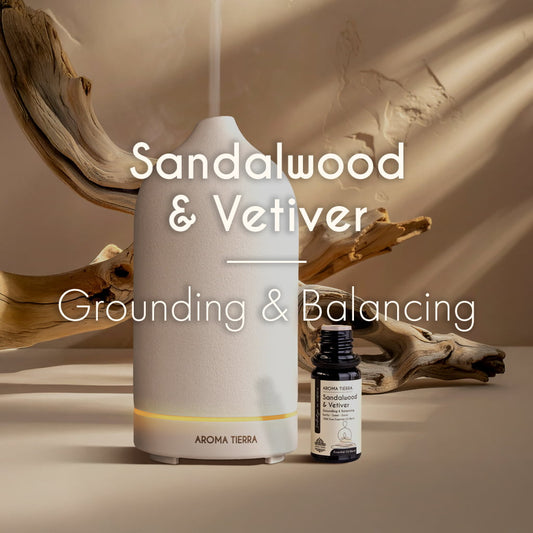 Sandalwood & Vetiver Essential Oil Blend – Grounding Aroma for Yoga, Meditation & Peace