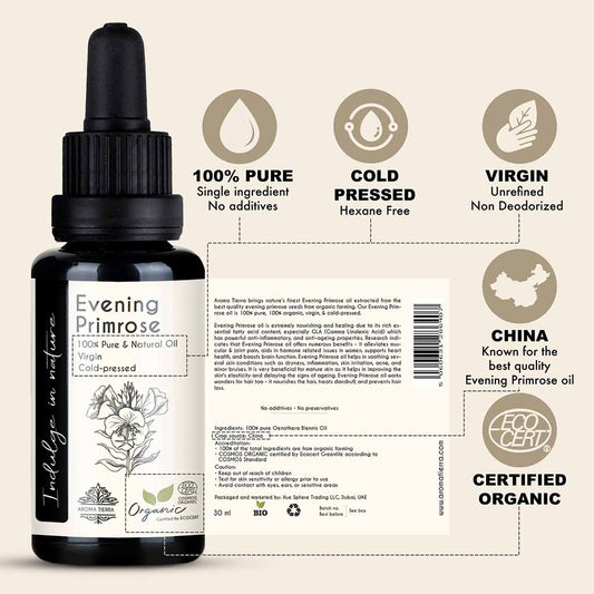 Organic Evening Primrose Oil - 100% Pure Cold Pressed Unrefined