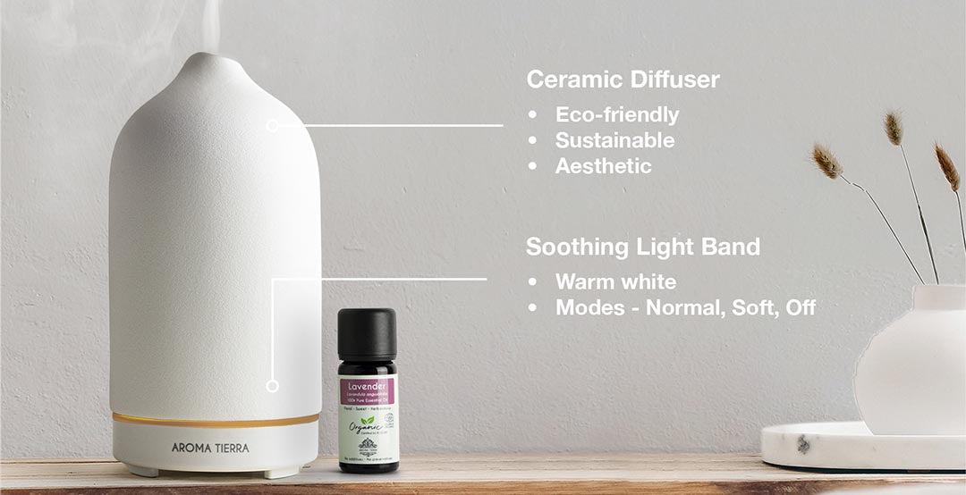 Upgrade your space with Santorini ceramic handcrafted diffuser that boasts aesthetic design, rustic matte finish, and soothing warm white light.